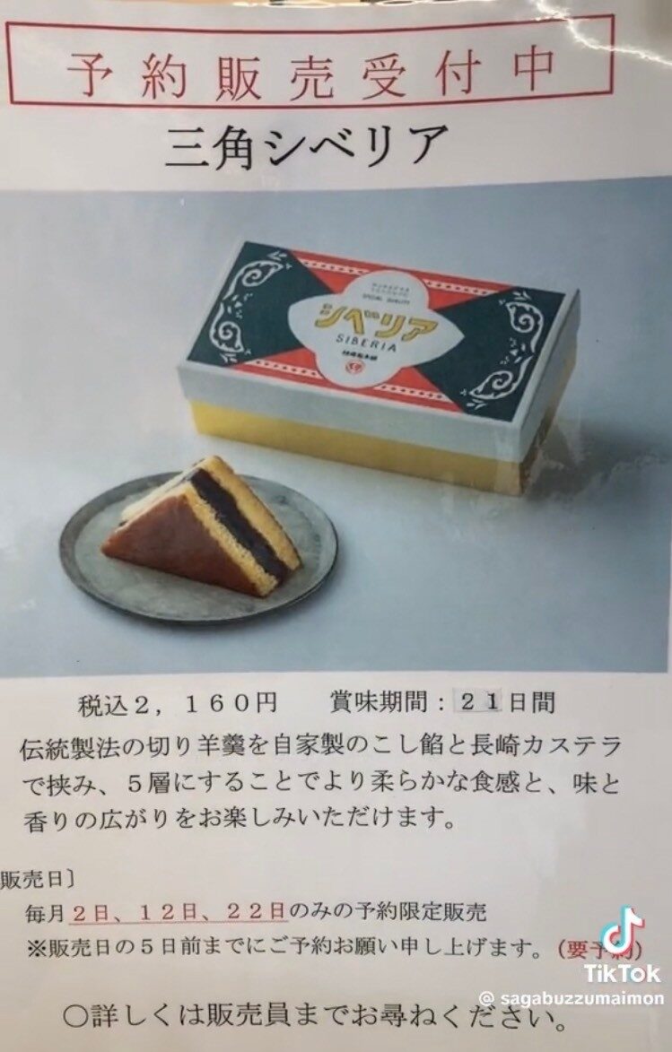 佐賀県小城市、老舗和菓子店村岡屋総本舗の「シベリア」